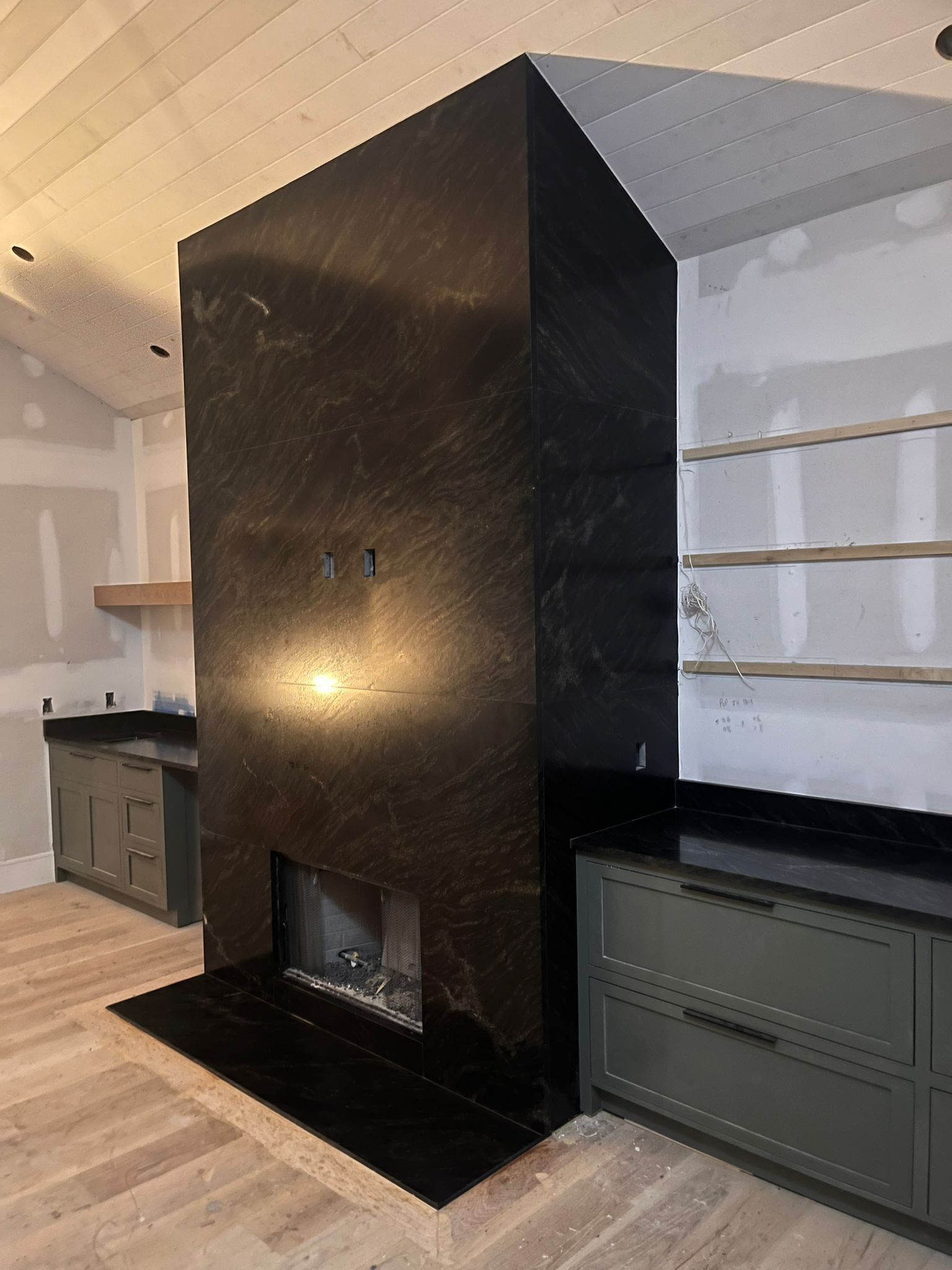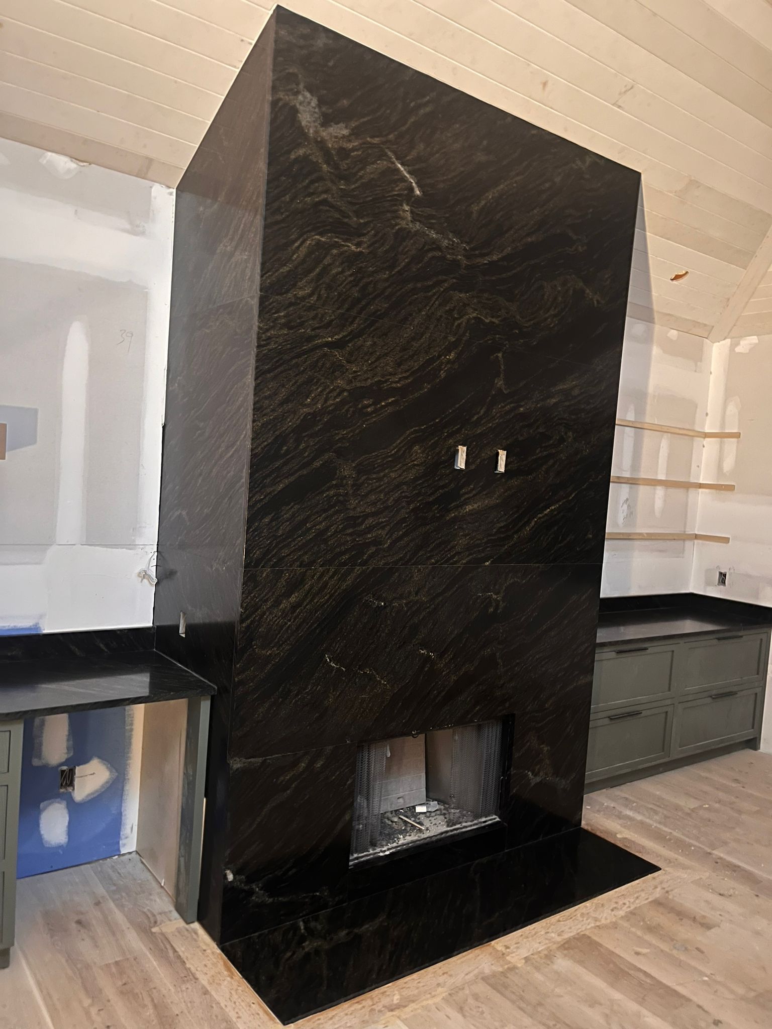 The transformation began with meticulous planning and precise measurements. Our skilled craftsmen carefully removed the existing fireplace facade, preparing the canvas for the installation of the Black Panther Granite.